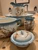 Decorative complete antique wash stand set made by Ridgways around 1905-1920. Set comprises jug, basin, chamber pot, lidded soap dish and vase. Jug has a crack and chamber pot has…