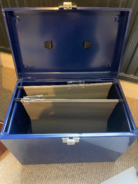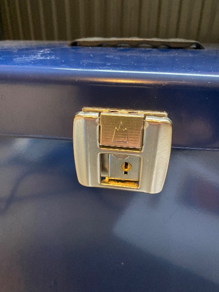 Hinges intact. Closes firmly.