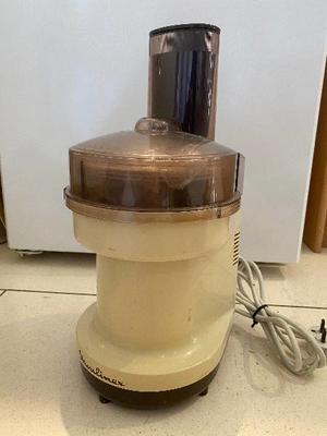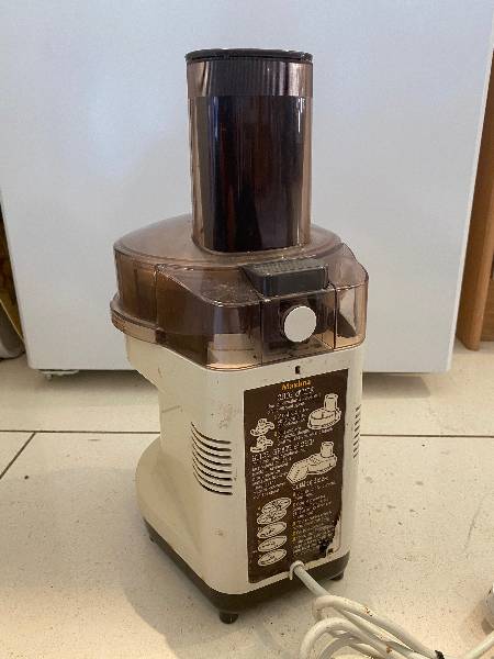 This is a vintage gem: an original Moulinex Maxima with all the bits. It's big, heavy and powerful and it's in full working order. It has the full range of blades for mixing, kneading, slicing, chopping and goodness knows what else. It also has the full size blender.
