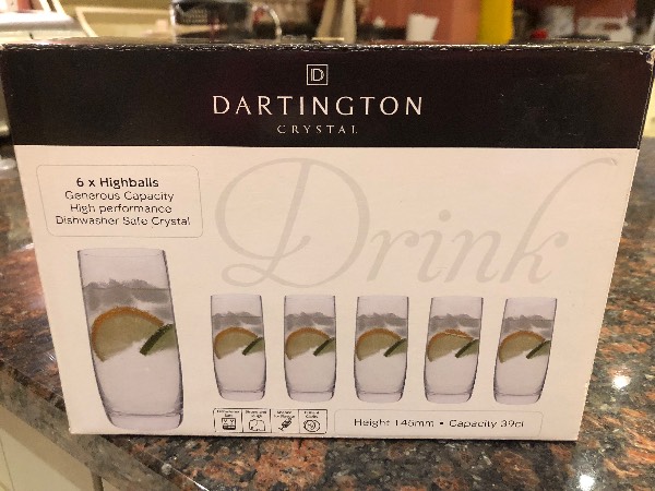 Box of 6 Darlington glass highball tumblers; unused. £12
