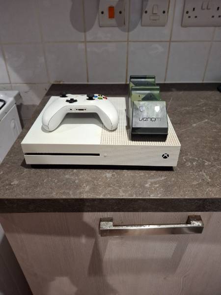 Used xbox one for sale in working order comes with original box and one controller it also comes with a battery charger few marks on top but still in good condition