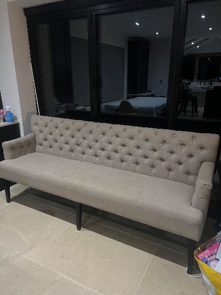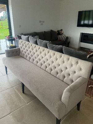 Beautiful, bespoke upholstered dining bench seat in a grey/taupe colour. Excellent quality, super comfy and in good condition. A few light marks on the fabric but will likely come off with a good clean. 2 metres long. Collection only from Charlbury. Message on here or on 07590559063