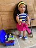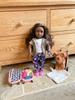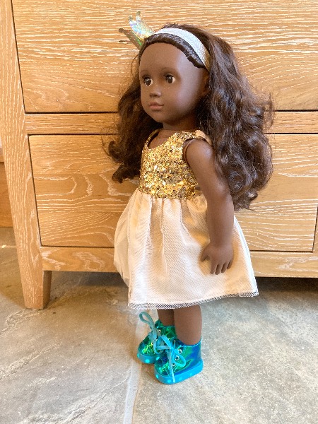 Our generation dolls are great dolls to play with. They are super fun and come with lots of different clothes and items. This generation doll is a dog walker! She comes with two outfits. She comes with a dog, a suitcase (with the dog’s essentials), a dog trailer, a raincoat and light up shoes. In the first outfit she has blue trousers with pink roses, pink shoes, a shirt and a gilet. The second outfit has a golden sparkly dress, blue light up shoes and a headband with a crown. The dog has brown fur and comes with a dog mat as well as the essentials!!