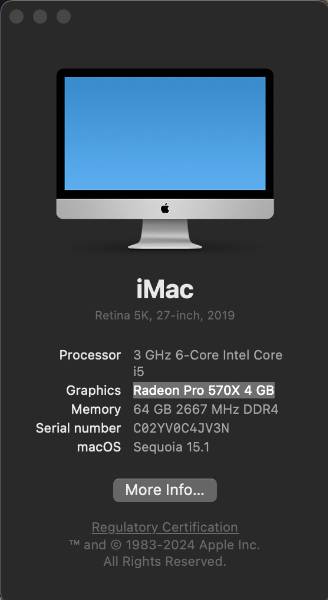 Owned from new, in excellent condition. I'm selling this iMac 27-inch Retina (Early 2019) Core i5 3GHz - SSD 64 GB, with Apple wireless keyboard with numeric keypad and mouse. £650 Please me message if interested. Stuart