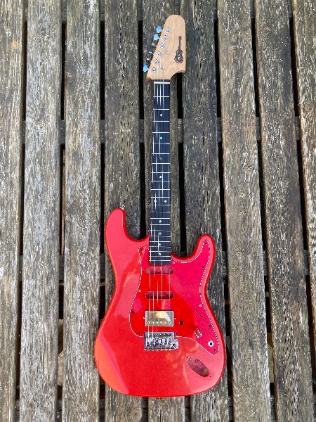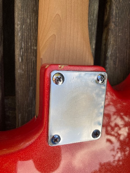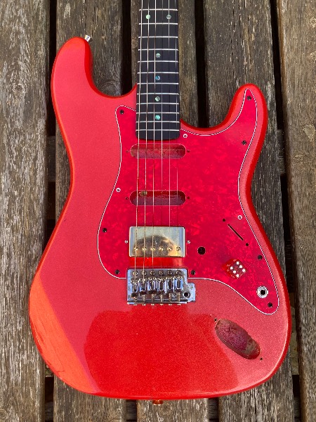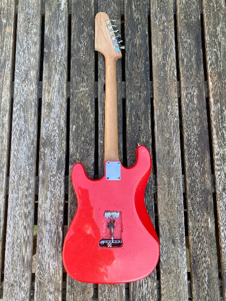 Vibrato is blocked off as I wanted it to be as simple as possible. It’s a bit beaten up and raw (see pics) but plays excellently with no fret wear and full pro set up. Neck profile is a chunky, soft V.