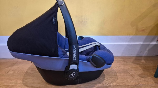 Free Maxi Cosi Pebble Car Seat suitable for new borns (with insert) until 15 - 18 months depending on the size of the child. It has never been in an accident. It's fully functional and you can detach the lining and machine wash (which I've done before posting here). You will need to use an ISOFIX base to install it in your car.