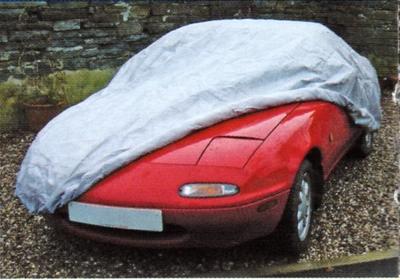 This cover can be used indoors or outdoors. It is breathable, allowing a wet car to dry off while covered. It will fit a Mazda MX-5 or similar size car and comes in a large zipped fabric bag.