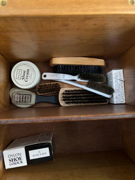 *Reserved* Shoe shine cabinet with shoe shining products