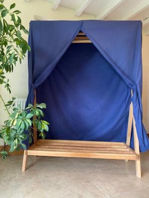 wooden frame and rail with blue canvas cover, great for attic or temporary storage, call 07900 142047
