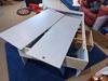 Table top come off in 2 parts (can store easily underneath) and there is one central drawer
