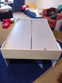Low table, great for kids bedroom/ playroom. 125cm L x 85cm W x 45cm H. Whitewashed with lilac finish and some polka dots!