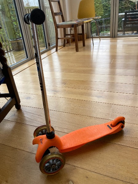 Orange mini micro scooter, suitable for age 3-6 ish. Always kept inside. £10 or offers.
