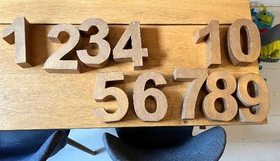 Cardboard 3D numbers 1-10 spray painted gold. Free to anyone who wants them - pickup from Charlbury