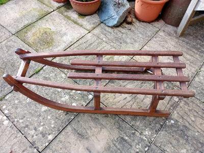 Purchased 40 years ago as a home display item, this one metre long vintage Davos toboggan is in very good condition complete with metal runners. It has never been used for its original purpose since we obtained it. It needs a leather strap or rope attached if it is to be towed. Price £40. Tel 01608 810116 or message on this site. Roy Coates