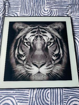 Printed onto glass, measures 50cms by 50cms.