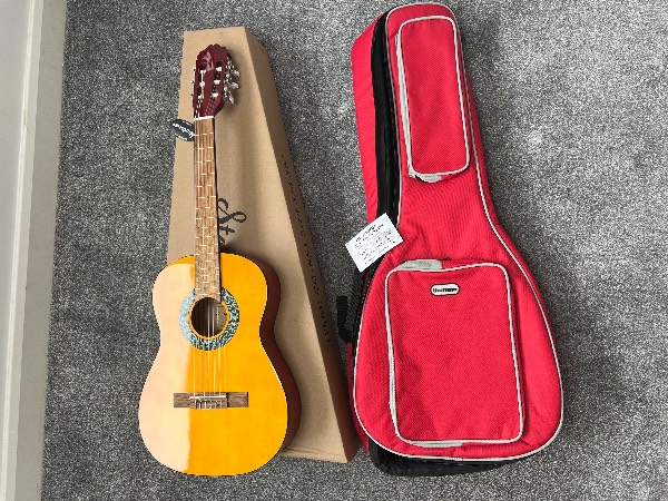 Brand new Thomann Startone CG851 3/4 size classical guitar with new Thomann Deluxe C3.4 classical guitar gig bag. Ideal for a young guitar student.