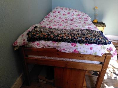 We are changing this bed for a double and it has been a solid and very comfortable bed for some years. It comes with a matress and is free to a good home