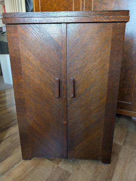1950's Singer sewing machine in cabinet. Treadle machine but converted to electric, and missing the pedal belt. Very heavy. Please contact me through the site. Free