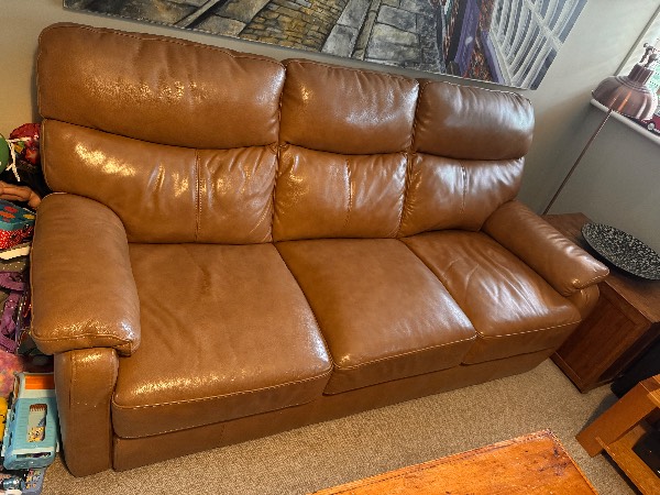 £100 for both - great condition 3-seater leather sofa with armchair. Buyer to collect but may be able to provide delivery next week if local. Call Alan 07538476315