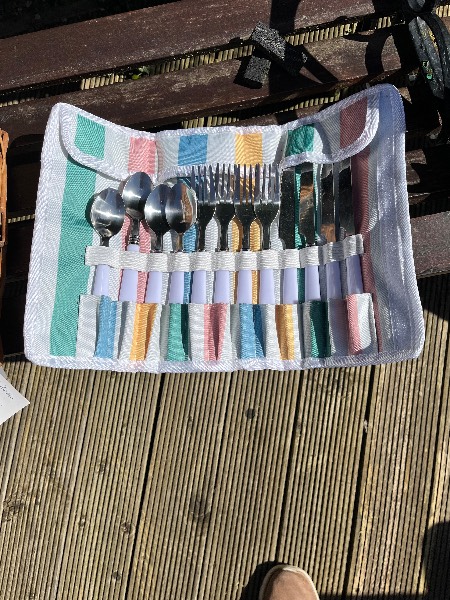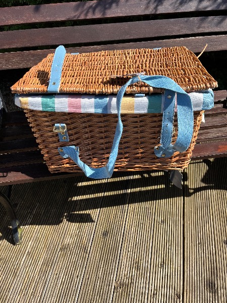 Lovely unused picnic basket from John Lewis, brand new with tags. It’s been in the garage for two years and has a couple of small marks on the inside material, but not very noticeable. Crockery still in cardboard wrapping. Would like £15.