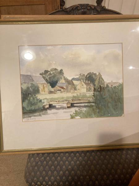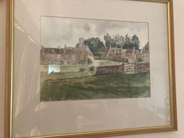 The titles of the paintings are Bledington Green, Upper Slaughter, Bledington Bridge and Daisy Bank Chadlington.