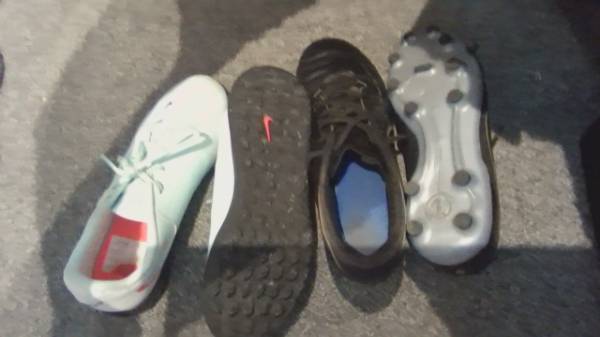 Black Nike moulded studs £10 and Cream/turquoise Nike Astros £5. Contact on here or via email rachelclaridge8@gmail.com