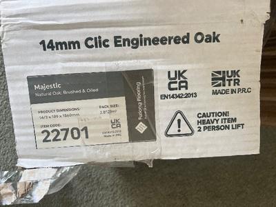 Majestic Natural Oak Clic engineered oak flooring 22701. 14/3 x 189 x 1860mm. 6 full unused lengths and 3 offcuts. Over 2 square metres of flooring. Product link here: