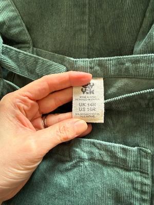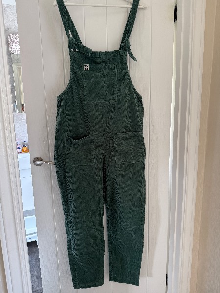 A pair of green corduroy Lucy & Yak dungarees in excellent condition, size 14R, selling as no longer wanted. £30. Collection from Charlbury.