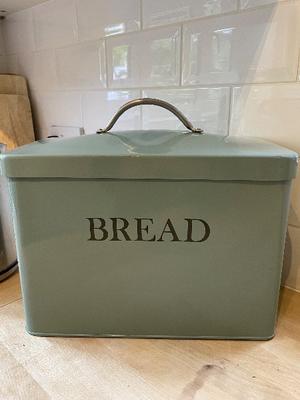 Bread bin by Garden Trading (colour is shutter blue). In very good used condition. Contact Liz on 07967 227613.