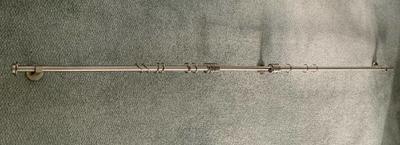 2m brushed steel curtain pole with wall fixings and curtain rings.
