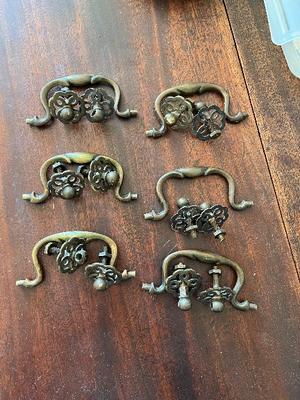 Set of six brass drawer handles, for a small donation to my local charity. Contact Birdie , 07778803259.
