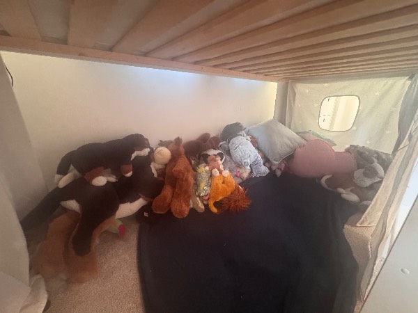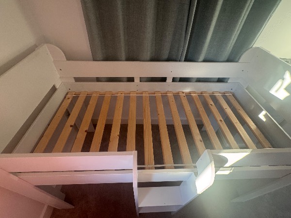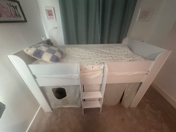 Bed is in great condition. There are just a few wear and tear marks on the step.