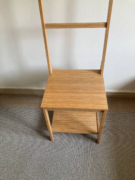 Practical bathroom towel rack chair. 3 functions - a seat , a shelf and a towel rack. Measurements W39xD44xH140 cm.