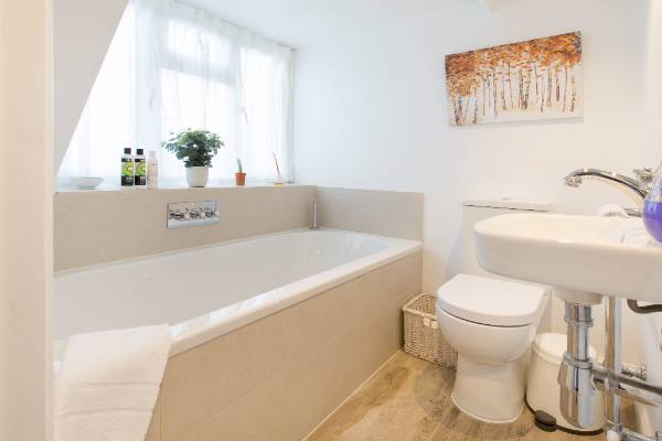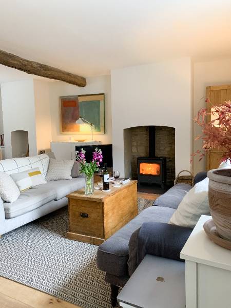 A 3-story, 4-bedroom (sleeps 7), 3-bathroom 19th century townhouse, with an enclosed private patio and lawn. The cottage’s original features - internal exposed stone walls and oak beams - are complimented by modernised bathrooms, kitchen and a wood burning stove. It's a stylish, cosy vibe.