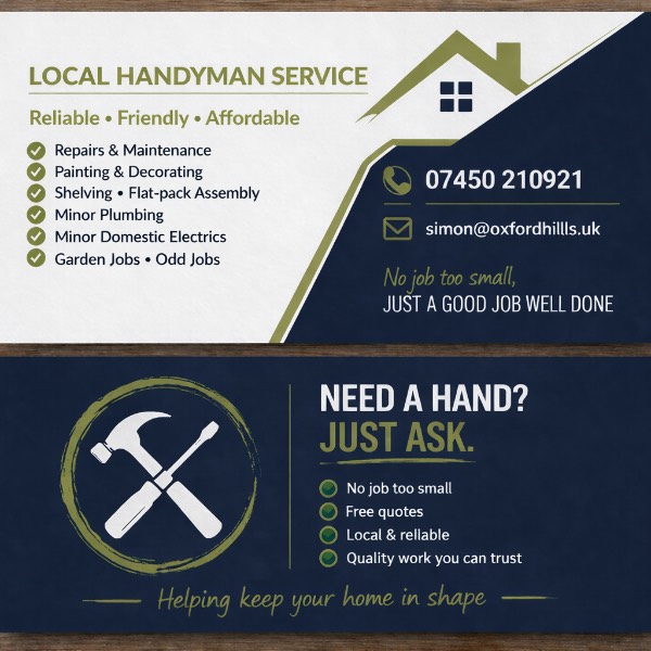 I’m a reliable local handyman offering a wide range of home maintenance and repair services in Charlbury and the surrounding villages.