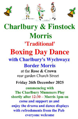 Mumming and Morris Dancing will take place on Boxing Day as usual. Come and join us at 12.30 at the back of the Rose and Crown pub on Church Street.