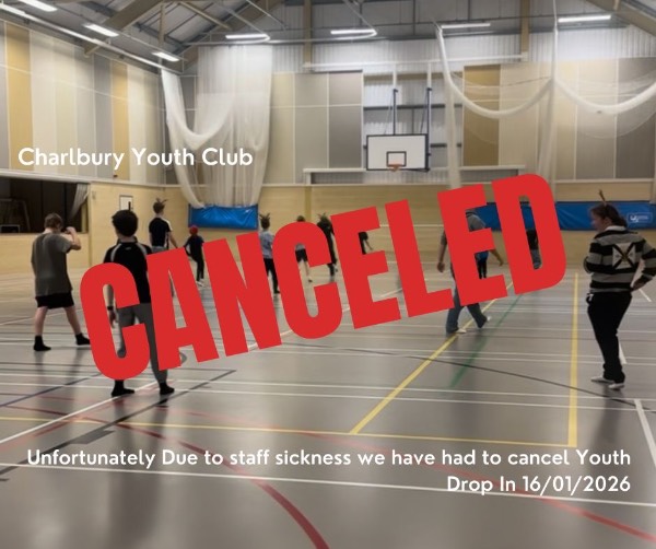 Myself and Bryanna, Regret to inform you that Charlbury Youth Club is closed tonight (16/1/25) due to us both not feeling very well.