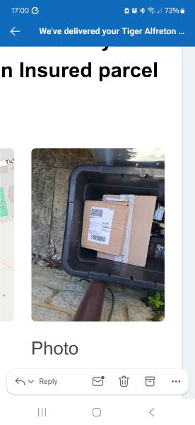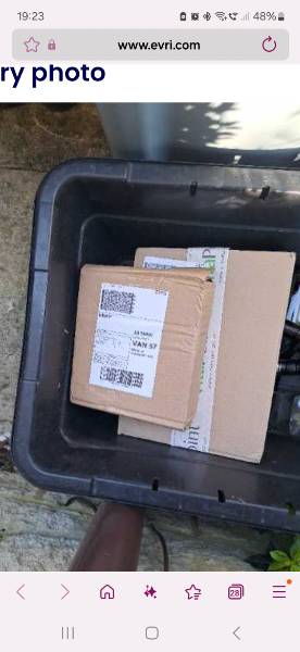 Thu 19 Mar, 17:04 Hello, Has anyone had a parcel delivered in their recycling box eith name natalie perry on it? Evri have said its been delivered however it's not at our address |