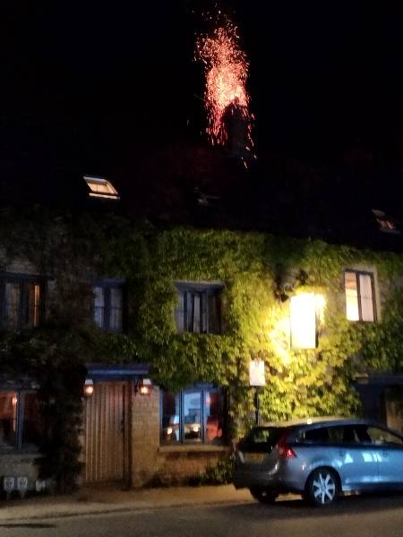 Sun 26 Apr, 11:07 To be more accurate, a chimney fire (the second in a week), but this one was a bit more spectacular as it was at night. Often it flared like a tiny volcanic eruption. |