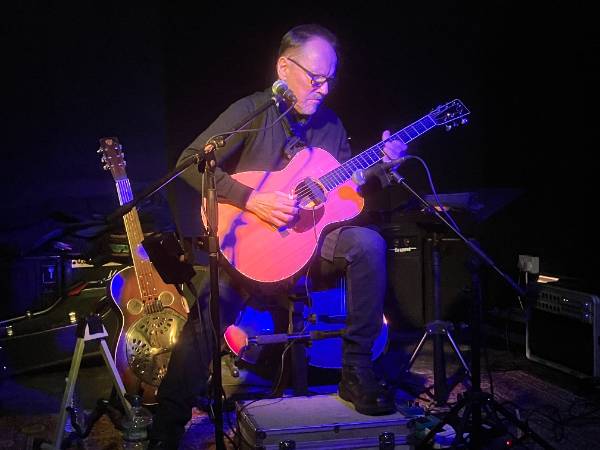 Sun 18 Jan, 12:35 I am reflecting on last night's magnificent gig at The Shed by the wonderful Kris Dollimore. For those who have never heard (or heard of!) Kris, he has played in many internationally-known bands including The Godfathers, Del Amitri, The Damned and Adam and The Ants, as well as being a superb solo blues musician and songwriter. In this latter capacity he has been playing in The Rose & Crown in Charlbury for 20 years, and also on The Riverside Stage at Cornbury ... and this was the first time we could hear every note! This was the first gig in the newly-renovated Shed, and the people of Charlbury and surrounding areas should feel very proud of themselves for what they have done, both in terms of raising money, and in practical work, as I said in my intro. Kris's first set explored alternative Guitar C-tunings, and was totally instrumental. To my delight, he included "East of England", which he used to play in The Rosie. "The Siege of Delhi" was a delight, being a kind of "theme and variations" on an old American folk tune that I knew from the playing of the late David Lindley. An extraordinary set! For his second set, Kris resurrected some of his old favourites, including "No Ghosts In This House", "My Brother Ray", "Testify", and his delicious treatment of Bukka White's "Poor Boy a Long Way from Home"! Kris has long extolled the music of John Fahey and played a couple of his tunes, including the almost winsome "Wine and Roses", and finished the evening with the very atmospheric "Sahara Blues", played on the Dobro. The audience was both respectful and very appreciative ... I think they will reflect on a superb evening of music. It was lovely also to see Kris's wife Mandy, who was making a video of the evening. If this has sparked your interest, maybe you can search Kris out on Youtube ... and come along next time he plays here! The next gig at The Shed, next Saturday, 24th January, features Great Bear Radio, Flamingo and Sebastian Reynolds. More details on the Events page.