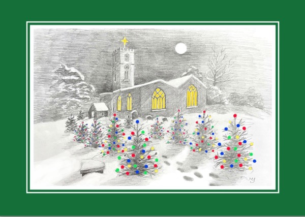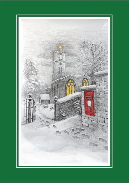With continued support for Slatyne in mind, I have produced two Christmas cards this year from pencil drawings of St Mary’s in the snow.