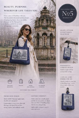 A celebration of place and practicality, this elegantly designed shopping bag features a finely detailed illustration of the Jubilee Fountain on The Playing Close in Charlbury — a subtle nod to heritage, reimagined for modern living.