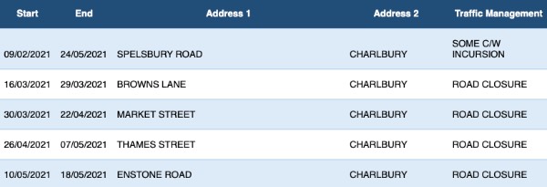 Future road closures for Gigaclear works are: