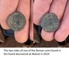 Roman coins and pottery have surfaced from time to time in this area. In 2019 metal detectorists obtained permission from Cornbury estate to explore the field above Walcot cottages and unearthed a hoard of Roman coins dating from the 4th century. About 50 or 60 bronze coins had been buried deliberately, probably for safe keeping in troubled times. The hoard is being studied by the British Museum and it will fascinating to hear the results of their analysis.